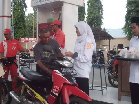 “ Disamping anggota PMR Bakti Sosial dan membagikan takjil kepada masyarakat umum juga diadakan tausiyah oleh ustadz Purwanto Pengasuh Pondok Pesantren Darul Hizbi bertempat dihalaman SPBU dan acara diakhiri dengan buka puasa bersama dan shalat maghrib berjama’ah. Tambah Imam ” *( Nur ).