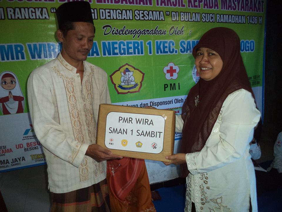 Mayang Putri Rinda Pratiwi Ketua Panitia Mengatakan Bahwa, acara ini merupakan agenda rutin tiap tahun, dimulai dengan Bakti Sosial di Pondok Pesantren “ Darul Hizbi “ pukul 08.00 WIB dan selesai pukul 11.00 WIB yaitu memberikan bantuan berupa bahan-bahan makanan pokok, peralatan tulis yang diserahkan terimakan kepada Pimpinan Pengasuh Pondok Pesantren Ustadz Purwanto yang akan dibagikan kepada 30 anak yatim piatu santriwan- santriwati Pondok Pesantren dan Pada sore harinya mulai pukul 15.00 WIB dilanjutkan pembagian takjil gratis kepada masyarakat umum di SPBU Desa Besuki Kecamatan Sambit Ponorogo sampai menjelang Buka Puasa acara ini dihadiri oleh Anggota PMR Wira SMAN 1 Sambit, anggota PMR Madya SMP Negeri 2 Kec. Sambit, anggota PMR Madya SMP Negeri 1 Kec. Sawoo, Dra. Hj. Endang Widnarsih & Drs. Purnomo, S.H, M.Hum selaku Pembina PMR Wakasek Kesiswaan Bapak Sugiman Rustan, M.Pd, Wakasek Kurikulum Bapak Sugeng Subagyo, S.Pd, POLSEK Sambit dan KORAMIL Kec. Sambit, serta Pengurus dan Karyawan SPBU.