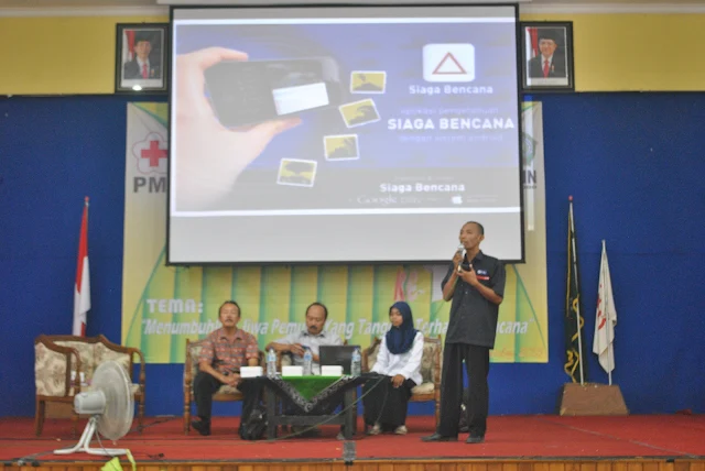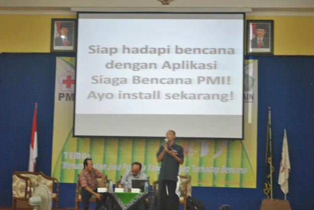 “ Di Akhir Sesi tanya jawab sebagai penutup kegiatan seminar ini dalam rangka membantu Pemerintah dan juga masyarakat dalam penanggulangan bencana pemateri dari PMI mensosialisasikan dan mengajak peserta untuk mendownload aplikasi Siaga Bencana yang sudah diluncurkan oleh PMI Pusat sejak 21/11/2014 di aplikasi android, dengan Pesan “ SIAP HADAPI BENCANA DENGAN APLIKASI BENCANA PMI !!! Ayo Install sekarang !!! *(Nur)
